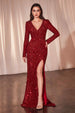 Radiate glamour in our fitted long sleeve sequin dress by Ladivine CH054, perfect for the woman who loves to shine. This stunning gown features a flattering V-neckline that elegantly frames your decolletage, while the gathered waistline accentuates your curves with refined sophistication. The long sleeves add a touch of elegance, making it ideal for cooler evenings or formal events. A side leg slit introduces a hint of allure, allowing for graceful movement and a glimpse of leg. Fully adorned with shimmering sequins, this dress catches the light beautifully, ensuring all eyes are on you. Perfect for galas, red carpet events, or any special occasion, this dress promises to make you the center of attention. Step into the spotlight and let your inner star shine in this dazzling, sophisticated ensemble.