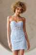 This elegant cocktail dress by Amelia Couture 7053s is a refined adaptation of the beloved Prom Style 7024, tailored perfectly for Homecoming events. Featuring a strapless sweetheart neckline and a fitted silhouette, it showcases delicate lace appliqué details. The corset lace-up tie back ensures a customizable fit, combining classic charm with modern sophistication for a confident, polished look.