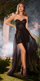 Andrea & Leo A1254 Strapless Black Lace Dress with Tulle Overskirt