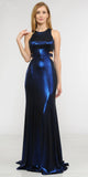 Royal Blue Metallic Foil Sleeveless Long Formal Dress with Side Cut-Outs