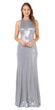 Silver Metallic Foil Sleeveless Long Formal Dress with Side Cut-Outs Back View