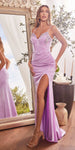 Ladivine OC021 Long Iridescent Fitted Gown Leg Slit Embellished Details