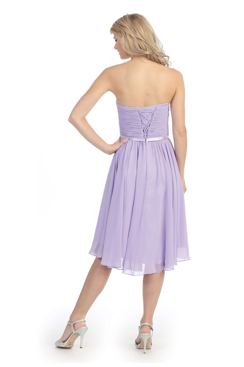 Ruched Bodice Knee Length A Line Lilac Bridesmaid Dress