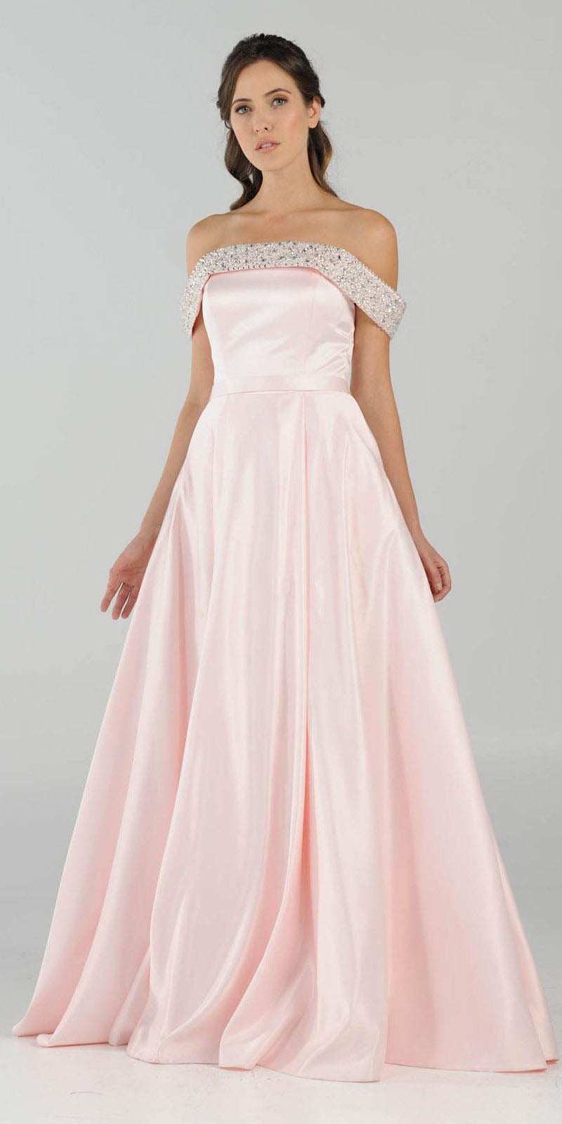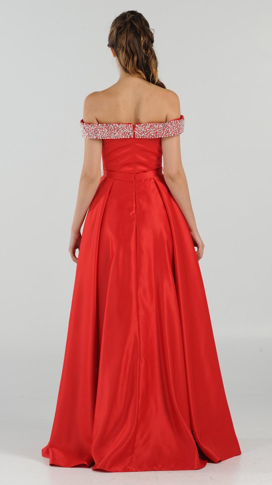 Poly USA | Ed Young 8242 Embellished Off-the-Shoulder Long Dress A-line