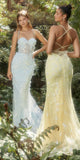 Imagine yourself wearing this fabulous floor length mermaid dress by Andrea & Leo A1115. Step into your own storybook fantasy with the enchanting floral mermaid gown! Delicate daisy appliques scatter across the shimmering tulle overlay, creating a beautiful and romantic garden scene. The sheer corset bodice will hug your figure while glimmering tulle straps criss-cross to an open back providing a flattering shape. This dreamy gown is perfect for any special occasion and will transport you to a place of pure fantasy. This formal dress speaks glamour for red carpet events, pageant, prom or in any other formal occasions!
