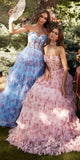 Andrea & Leo A1334 Long Floral Printed Strapless Tiered Skirt Dress