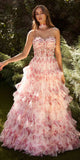 The Andrea & Leo A1334 ball gown exudes timeless grace and enchanting elegance with its A-line, floor length silhouette and tiered layered ruffle tulle skirt. The sweetheart neckline and sleeveless, strapless design evoke a sense of poetry and romance, while the blooming petal floral print adds a touch of whimsy. Perfect for formal events, this dress features an open mid back and sheer boned bodice for a fairytale, floral fantasy. This formal dress is definitely a one-of-a-kind long dress for red carpet events, pageant, prom or in any other formal occasions!