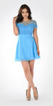 Blue Illusion Lace Bodice Short Sleeves Homecoming Party Dress