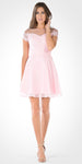 Pink Illusion Lace Bodice Short Sleeves Homecoming Party Dress