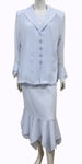Introducing the Hosanna 5545 3-piece chiffon dress set, made in the USA for special occasions. This modest set includes a button up long sleeve jacket, sleeveless top, and an asymmetrical tea length skirt with an elastic waistband for comfort.