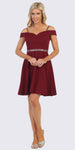 Celavie 6395 Knee Length Cold Shoulder Burgundy A-Line Dress