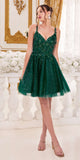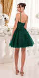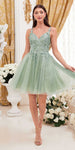 Imagine yourself in this beautiful short A-line tulle evening gown for your next formal event. This knee length formal dress by Ladvine 9245 has a V-neckline and features embellished straps and 3D applique and glitter. An ideal short dress for homecoming, pageant, prom or in any other formal occasions!