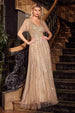 Elevate your elegance with this enchanting A-line dress by Ladivine CD0241, featuring a flattering V-neckline and charming short butterfly sleeves adorned with a linear beaded motif. Crafted from pleated embellished tulle, the fitted bodice gracefully complements the soft A-line skirt for a sophisticated look.