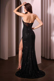 This strapless fitted gown by Ladivine CD3929 dazzles with a sweetheart neckline and a stunning array of sequins and beads for a glamorous finish. The structured bodice provides exceptional support, while the leg slit adds a touch of allure to its sophisticated silhouette. Perfect for prom, black-tie occasions, or formal events, this dress is a statement of elegance and confidence.