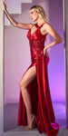 Imagine yourself wearing this long stunning formal sequin gown by Cinderella Divine CDS415 for your next special event! This gorgeous floor length dress has a V-neckline with a sheer insert panel and features a front cross strap, lace, sequins and beaded waistline, front slit and side satin sash that drops to the floor. An ideal full-length dress for red carpet events, pageant, prom or in any other formal occasions!