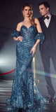 Imagine yourself in this beautiful floor length fitted evening gown for your next formal event by Ladivine J844. This long formal dress has a sweetheart neckline and features a beautiful glitter print and detachable puff sleeves.   An ideal full-length dress for red carpet events, pageant, prom or in any other formal occasions!