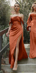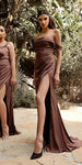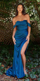 Imagine yourself wearing this long fitted formal evening gown for your next special event! This column floor length satin dress by Ladivine 7488 can be worn as an off the shoulder or strapped. The dress features a side leg slit and is gathered in just the right places with beautiful lines that accentuate your figure. An ideal full-length dress for red carpet events, pageant, prom or in any other formal occasions! Dress 7482 is also featured in one of the pictures.