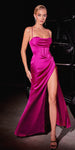 Imagine yourself wearing this long beautiful formal evening gown for your next special event! This column floor length satin formal dress by Ladivine 7483 features a sultry bodice corset that offers both comfort and style. This classy yet trendy design features a corset back with an adjustable fit to accentuate curves, thin spaghetti straps, side leg slit and a draped neckline for an elegant finish. An ideal full-length dress for red carpet events, pageant, prom or in any other formal occasions!