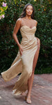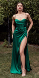Cinderella Divine 7483 Long Corset Cowl Neckline Formal Satin Gown