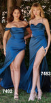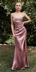 Cinderella Divine 7483 Long Satin Corset Cowl Neckline Formal Gown