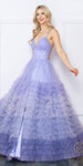 Nox Anabel C1420 Long Ombre Tiered Ruffled Skirt A-Line Slit Gown