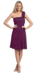 One Shoulder Knee Length Plum Chiffon Bridesmaid Dress