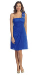 One Shoulder Knee Length Royal Blue Chiffon Bridesmaid Dress