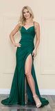 Poly USA | Ed Young 8896 Floor Length Front Slit Spaghetti Straps Spandex Shimmer Dress