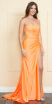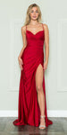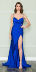 Imagine yourself wearing this beautiful floor length dress by Poly USA | Ed Young 8896. This long, spaghetti strap, column gown features a crisscross lace up back and open leg slit. An ideal full-length dress for red carpet events, pageant, prom or in any other formal occasions!