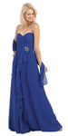 Ruched Bodice Layered Skirt Long Royal Blue Formal Gown