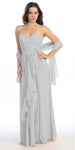 Ruched Bodice Layered Skirt Long Silver Formal Gown