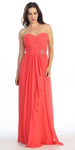 Ruched Bodice Layered Skirt Long Coral Formal Gown