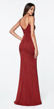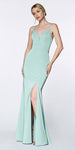 This gorgeous floor length dress by Cinderella Divine 7470 features a sleeveless, V-neckline with fitted bodice and empire waist well-defined by tailored seam lines. The back has a zipper closure while the full-length skirt shapes a trumpet silhouette with a thigh-high front leg slit. This dress is perfect for prom, formal evening event or any special occasion.