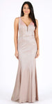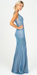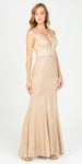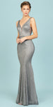 Shine and stand out in this fabulous mermaid style evening gown by Eureka Fashion 8987. This floor length long formal dress is made of shimmer jersey which features a sheer-inset deep v-neckline and u-shape open back with a thin band wraps around the natural waist. This stunning floor-length dress is a perfect outfit for prom, red carpet events, gala dinner party or in any other formal occasions.