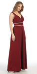 Sleeveless V-Neck and Back Long Formal Dress Burgundy