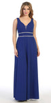 Step into this beautiful full-length formal dress in royal blue on your next special event! This sleeveless made of jersey gown features a v-shape neckline adorned with a layers of thin band that emphasize the figure-flattering empire waist. This a-line silhouette dress by Celavie 6493L is ideal for bridesmaids, marine or military ball or in any other formal occasions!