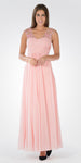 V-Neck Embellished Pleated Bodice Empire Waist Formal Dress Long Blush