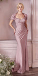 Imagine yourself wearing this long stunning formal evening gown by Cinderella Divine KV1061 for your next special event! Perfect for the mother of the bride or any sophisticated ladies wanting some shoulder coverage. This fitted gown is cut from a comfortable and controlling stretch satin. An over the shoulder shawl wraps into a cap sleeve leaving a small back opening for arm movement. A pleated waistline compliments the figure opening up to a leg slit for ease of movement. An ideal full length dress for red carpet events, pageant, prom or in any other formal occasions!