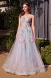 Make a grand entrance in this breathtaking ball gown by Andrea & Leo A1383, featuring a strapless sweetheart neckline and a sheer bodice adorned with watercolor-like floral appliques. Delicate beading and layers of tulle create a romantic silhouette, while the structured bodice ensures a flawless fit. Perfect for prom, black-tie events, or formal occasions, this gown exudes elegance and timeless charm.