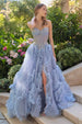 Designed to embody the essence of a fairytale, this voluminous A-line gown by Andrea & Leo A1483 features a romantic sweetheart neckline and sheer boned bodice adorned with intricate beadwork. The cascading layers of soft ruffled tulle add dimensional texture and movement, while the structured corset enhances the waistline for a dramatic silhouette. Perfect for grand entrances and magical moments, this gown is a dreamy choice for prom, quinceañeras, or gala events.