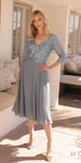 Imagine yourself wearing this tea length, three quarter length sleeve, A-line formal gown for your next special event by Nox Anabel MF104. An ideal full-length dress for black tie, red carpet, mother of the bride or in any other formal occasions!
