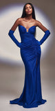Imagine yourself in this beautiful floor length fitted evening gown for your next formal event by Ladivine CD889. This long glitter stretch formal dress is strapless with a sweetheart neckline, front slit and includes matching gloves. An ideal full-length dress for red carpet events, pageant, prom or in any other formal occasions!
