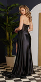 Nox Anabel E1237 Floor Length Satin Cowl Neck Strapless Gown Side Sash