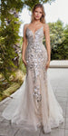 Imagine yourself wearing this fabulous floor length mermaid dress by Andrea & Leo A1118 This lovely evening gown is magical and features a plunging deep V-neckline with sheer insert panel, spaghetti straps and is embellished with sequins and embroidered floral pattern. This sparkly formal dress speaks glamour for red carpet events, pageant, prom or in any other formal occasions!