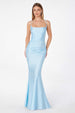 This full-length dress by Astee T3001 features a sophisticated square neckline and delicate spaghetti straps that enhance its elegant silhouette. Designed with a fitted cut, it contours the body gracefully while the strappy open back adds a stylish, modern touch. Versatile and refined, this dress is ideal for a wide range of occasions, delivering timeless appeal and confidence to the wearer.
