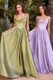 Elevate your special occasion style with the Ladivine 7446 satin dress, expertly designed for elegance and comfort. Featuring a sophisticated cowl neckline and a fitted corset bodice, this sleeveless gown enhances your silhouette while providing adjustable support with its lace-up back tie. The A-line skirt flows gracefully, complemented by a tasteful leg slit that adds a hint of allure. Ideal as a bridesmaid dress or for formal events, this satin gown combines classic charm with modern detailing to ensure you look and feel your best.
