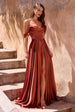 This elegant off-the-shoulder satin dress by Ladivine 7449 combines timeless sophistication with modern design. Featuring a flattering cowl neckline and a fitted corset bodice with a lace-up tie back, it ensures a perfect silhouette and comfortable fit. The sleeveless A-line skirt flows gracefully, enhanced by a tasteful leg slit for ease of movement and subtle allure. Ideal for bridesmaids, this dress balances classic charm and contemporary style, making it a standout choice for formal occasions.