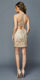 Juliet 815 Short Halter Fitted Champagne Homecoming Dress Cut-Out Back