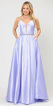 Enjoy the celebration wearing this silky satin long formal dress by Poly USA | Ed Young 8672. Featuring a plunging v-neck with sheer-inset supported by a dainty spaghetti straps connected to the v-shape back with zipper closure. The voluminous skirt with pockets is crowned by a dazzling straps wraps around the natural waist. This long formal dress is a perfect outfit for prom, red carpet events, gala night or in any other formal occasions!
