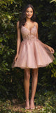 Imagine yourself in this beautiful short A-line tulle dress  for your next formal event. This sleveless formal dress by Cinderella Divine CD0189 has a deep plunging neckline with a sheer insert panel and features a floral applique bodice with sparkley tulle skirt. An ideal full-length dress for homecoming, pageant, prom or in any other formal occasions!